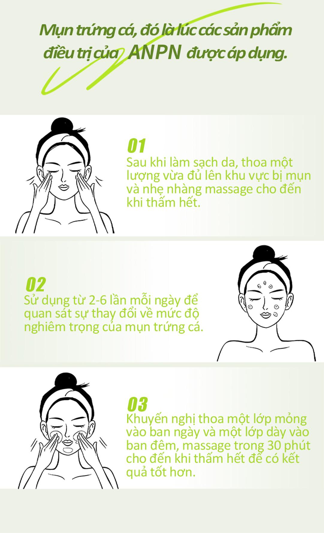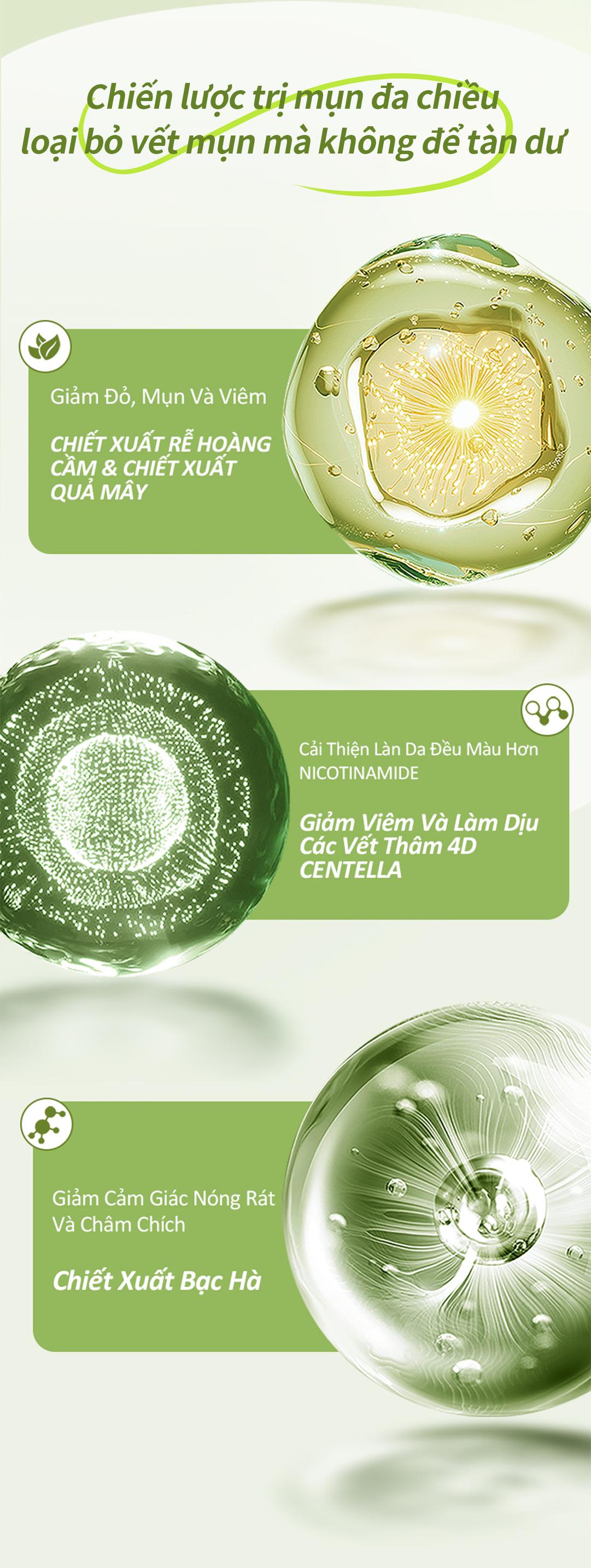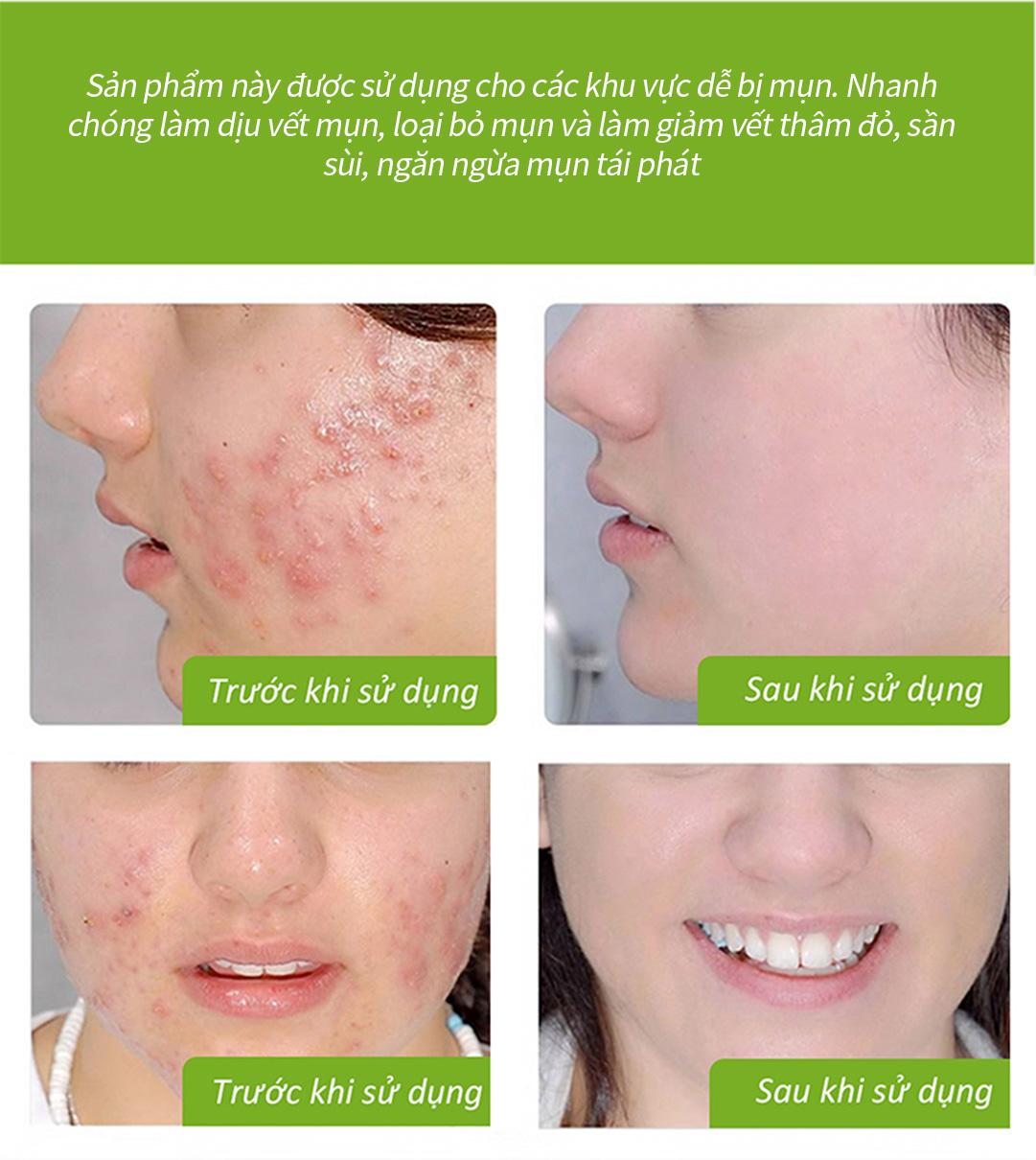 - Hỗ trợ giảm mụn, giảm thâm, làm dịu vùng da mụn