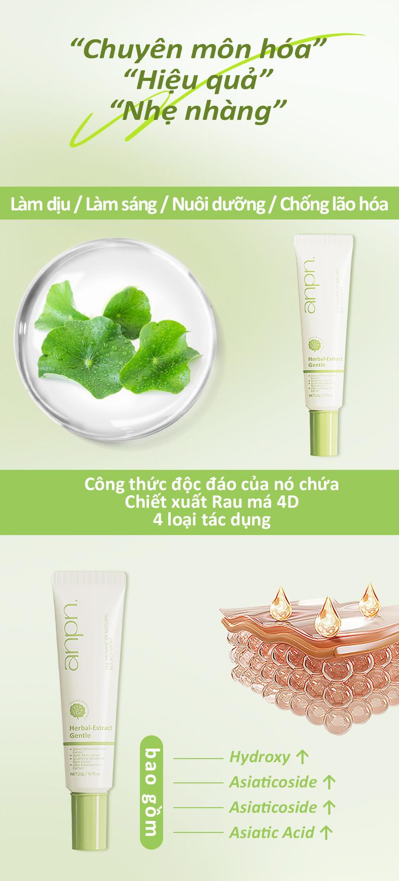 - Centella Asiatica 4D: Làm dịu, chống dị ứng, chống oxy hóa, phục hồi hàng rào bảo vệ da, làm sáng da
