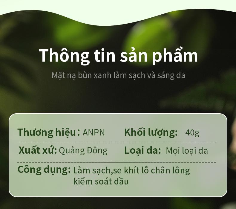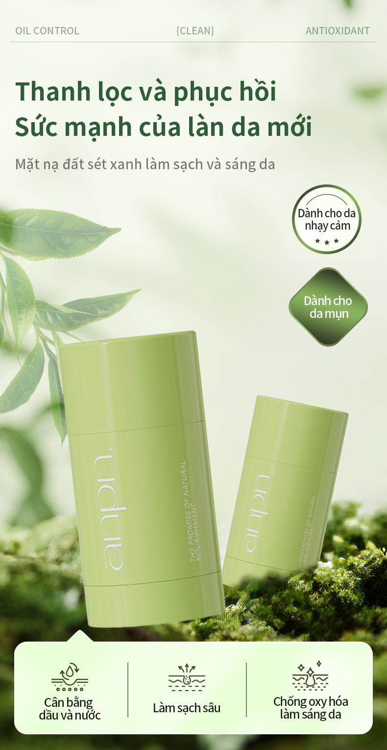 anpn Thanh Lăn Mặt Nạ Đất Sét Bùn Khoáng Xanh với chiết xuất bột trà xanh và rau má hỗ trợ làm sạch và sáng da, cải thiện lỗ chân lông và giảm mụn đầu đen.